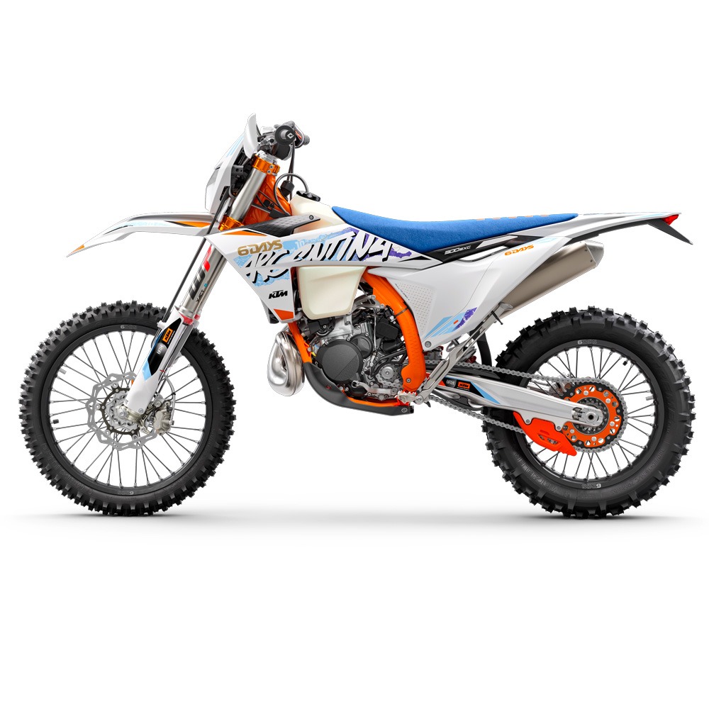 Progettata per garantire rigidità longitudinale, la gamma KTM EXC SIX DAYS 2024 è costruita intorno a un telaio verniciato a polvere di colore arancione lucido completamente nuovo, pensato per fornire un feedback eccezionale al pilota, assorbimento dell’energia e stabilità alle alte velocità. Tutto questo grazie al riposizionamento delle masse rotanti nel telaio e all’aggiunta di un giunto del cannotto di sterzo forgiato. Anche i supporti delle pedane sono stati spostati verso l’interno, snellendo le forme per ridurre il rischio di restare incastrati. E quando scendi dalla sella, un cavalletto laterale monopezzo forgiato completamente ridisegnato assicura che la tua due ruote da enduro si mostri con orgoglio.