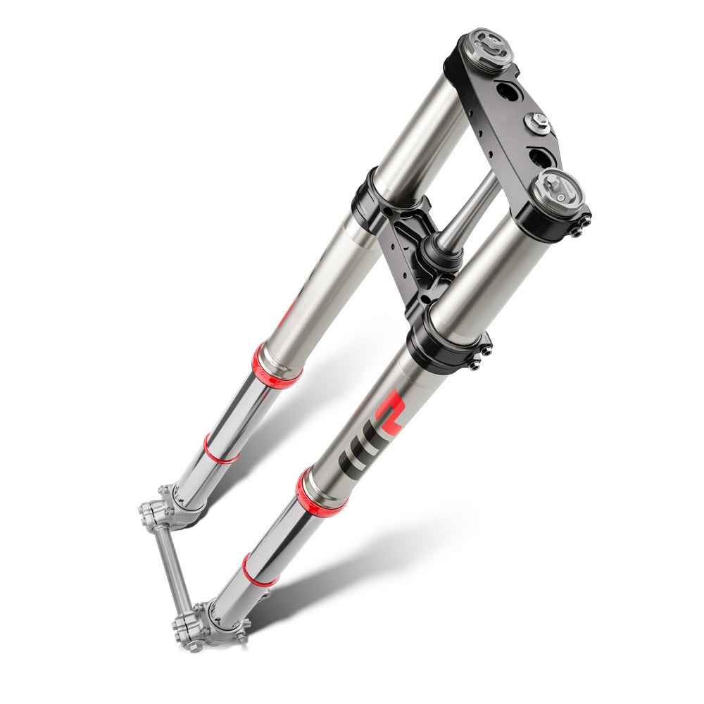 Solida come una roccia a qualunque velocità, grazie a un giunto del cannotto di sterzo forgiato e riposizionato e alle piastre della forcella fresate CNC. Realizzate in alluminio di alta qualità, queste ultime offrono una rigidità perfettamente regolata del perno dello sterzo, un allineamento preciso degli steli della forcella e una geometria esatta del morsetto per garantire un funzionamento della forcella estremamente reattivo e fluido, per non parlare della stabilità assoluta quando si corre tra i solchi e verso il podio.