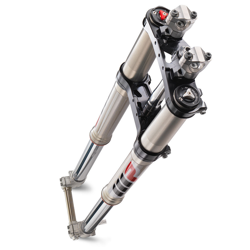 La KTM FREERIDE E-XC usa la forcella WP XPLOR 43, composta da steli rovesciati da 43 mm con un’escursione di 250 mm. Con una risposta e uno smorzamento eccellenti, la forcella WP XPLOR 43 è sensibile ed è in grado di prevenire i fondocorsa. La forcella di tipo split con molle su entrambi i lati fa sì che ciascuna gamba forcella presenti funzioni di smorzamento separate (compressione a sinistra e smorzamento in estensione a destra), entrambe facilmente regolabili attraverso i registri posti in cima alla forcella.